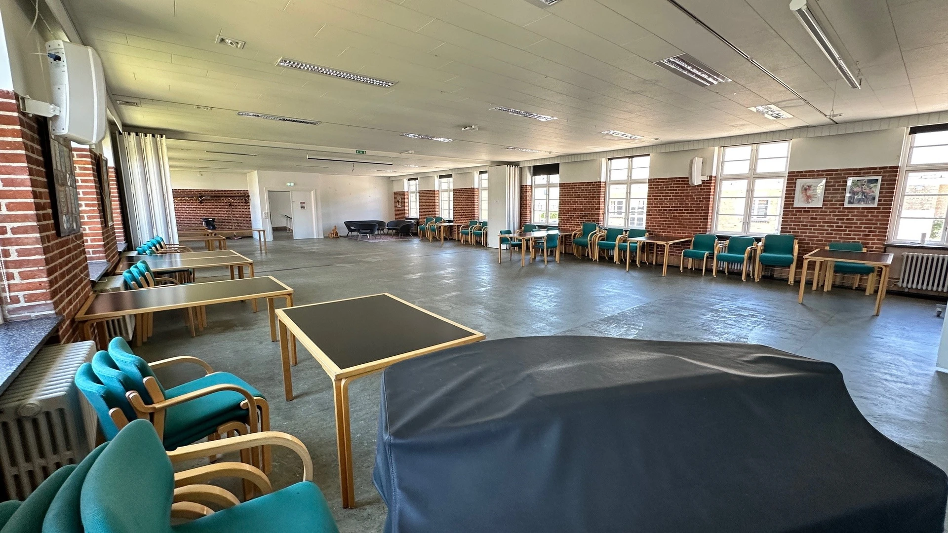Kapacitet: Max. ca.80 til siddende arrangementer. Hvis caféen benyttes til foyer og stående gæster ifm. teater eller fernisering, er den godkendt til 149 pers.
